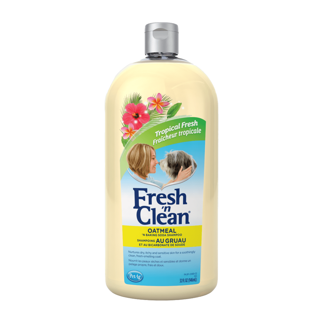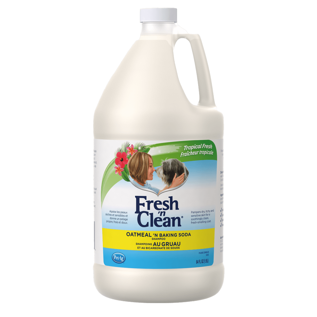 Bathe your dog in a blend of soothing oatmeal, baking soda and Aloe vera with Fresh ‘n Clean Oatmeal ‘n Baking Soda Shampoo. The shampoo uses gentle, plant-based cleansing ingredients. This shampoo works into a deep, rich lather, washing away dirt and debris to leave the coat clean and refreshed while soothing the skin and controlling odor. And the Fresh ‘n Clean signature, long-lasting scent keeps your dog smelling fresh up to two weeks.