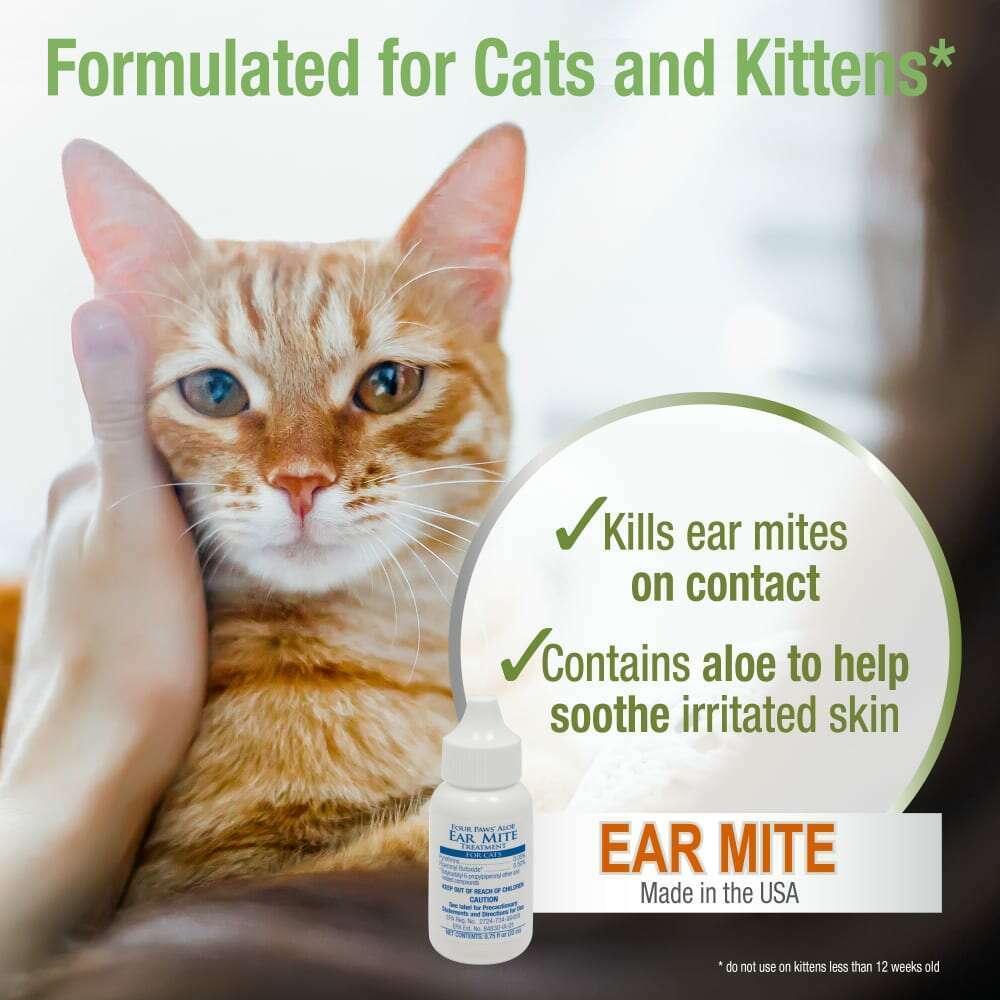 Help your furry friend look and feel their very best with Healthy Promise Aloe Ear Mite Treatment for cats. These drops kill ear mites on contact for quick relief. Cats with ear mites typically shake their heads and scratch their ears frequently, and you can detect ear mites by placing some of your cat's waxy debris on a dark surface and carefully watching for tiny white specks to move away from the debris. To help soothe your feline's irritated skin, these drops also contain aloe vera. This cat ear mite medicine is intended for cats and kittens older than 12 weeks.