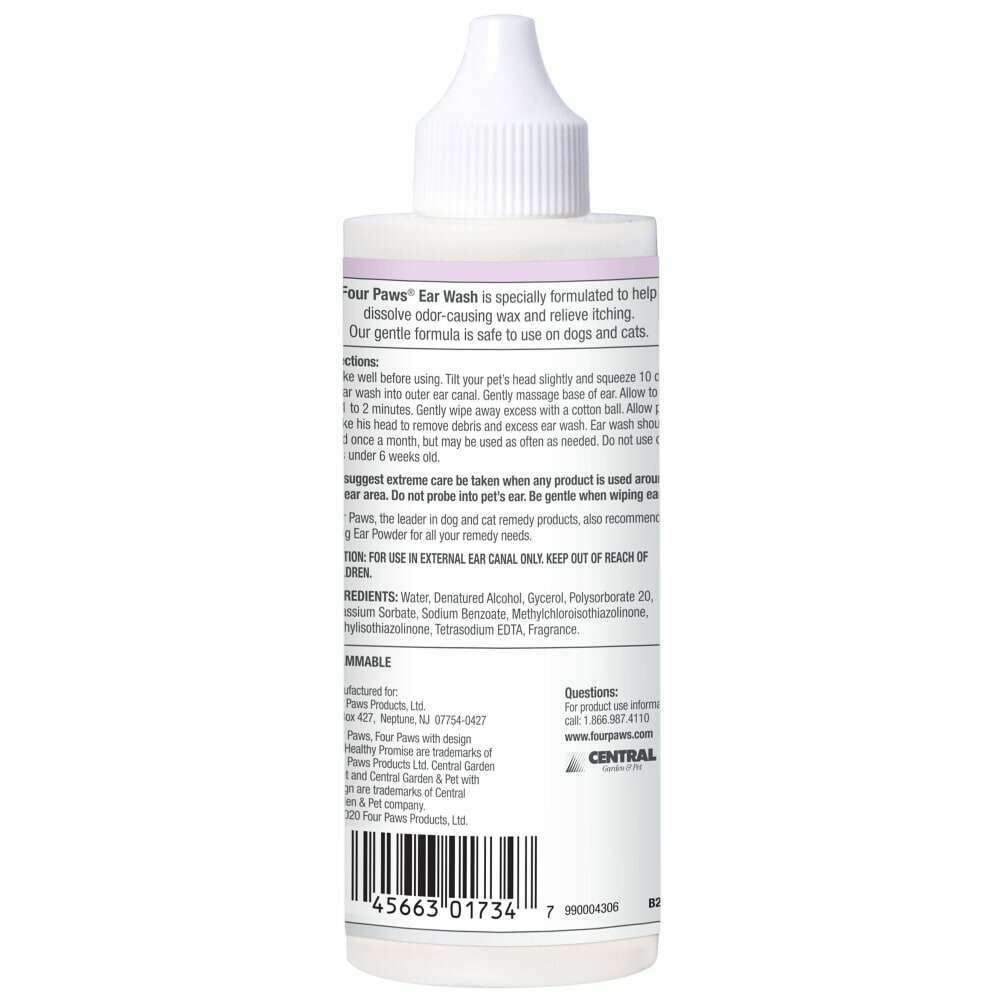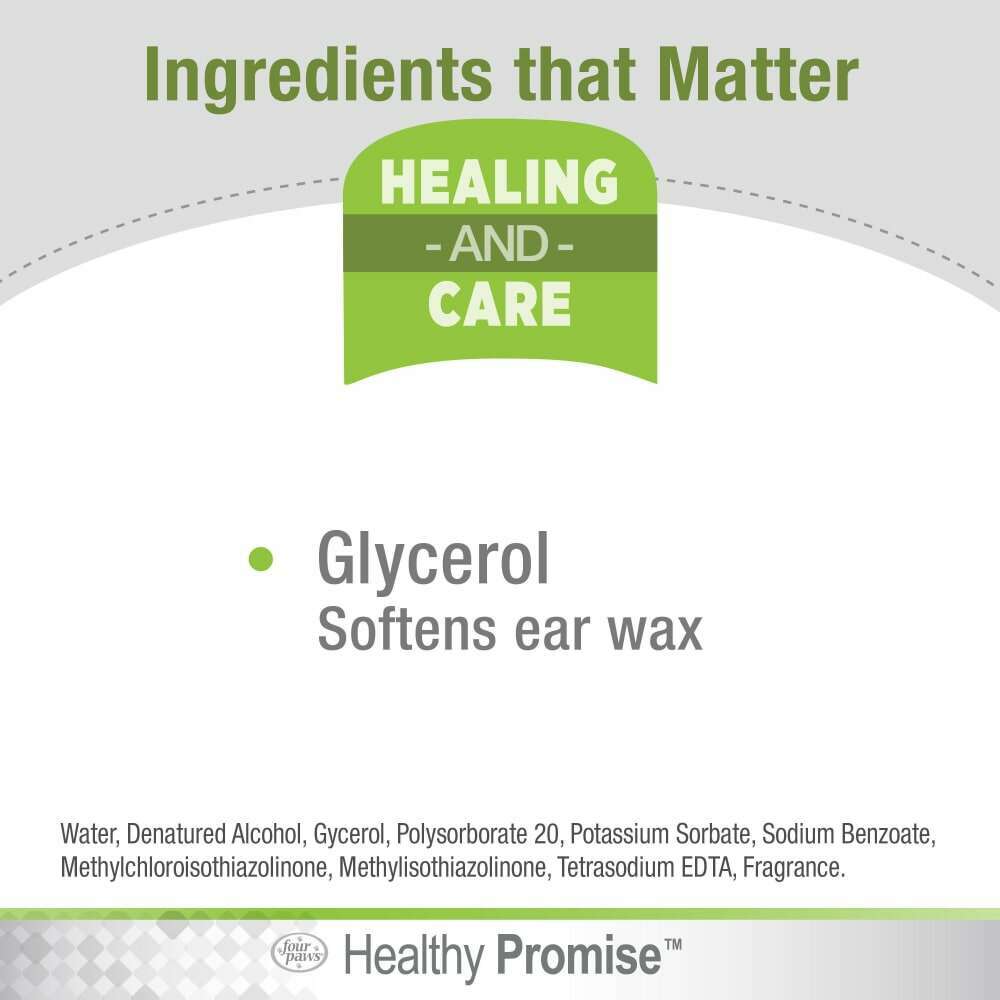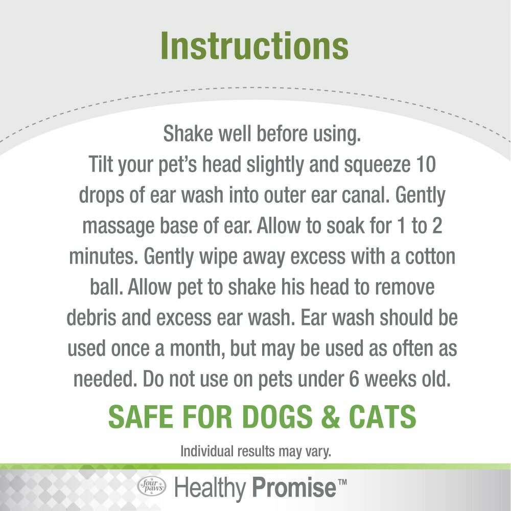 Four Paws has been helping pet parents and four-legged family members flourish together for 50 years. Driven by the passion to keep our furry best friends thriving happily, Healthy Promise supplements and healing & care products help provide our pets a healthy, active, and fulfilling life. Healthy Promise Pet Ear Wash is specially formulated to help dissolve odor-causing wax and provide pet itch relief. Our gentle, non-irritating pet ear cleaner is free of parabens and dyes. This pet ear cleaning solution wash is also safe to use on dogs and cats. Add Healthy Promise pet healing & care products to your fur friend's daily routine and live Happier, Healthier, and Stronger together!