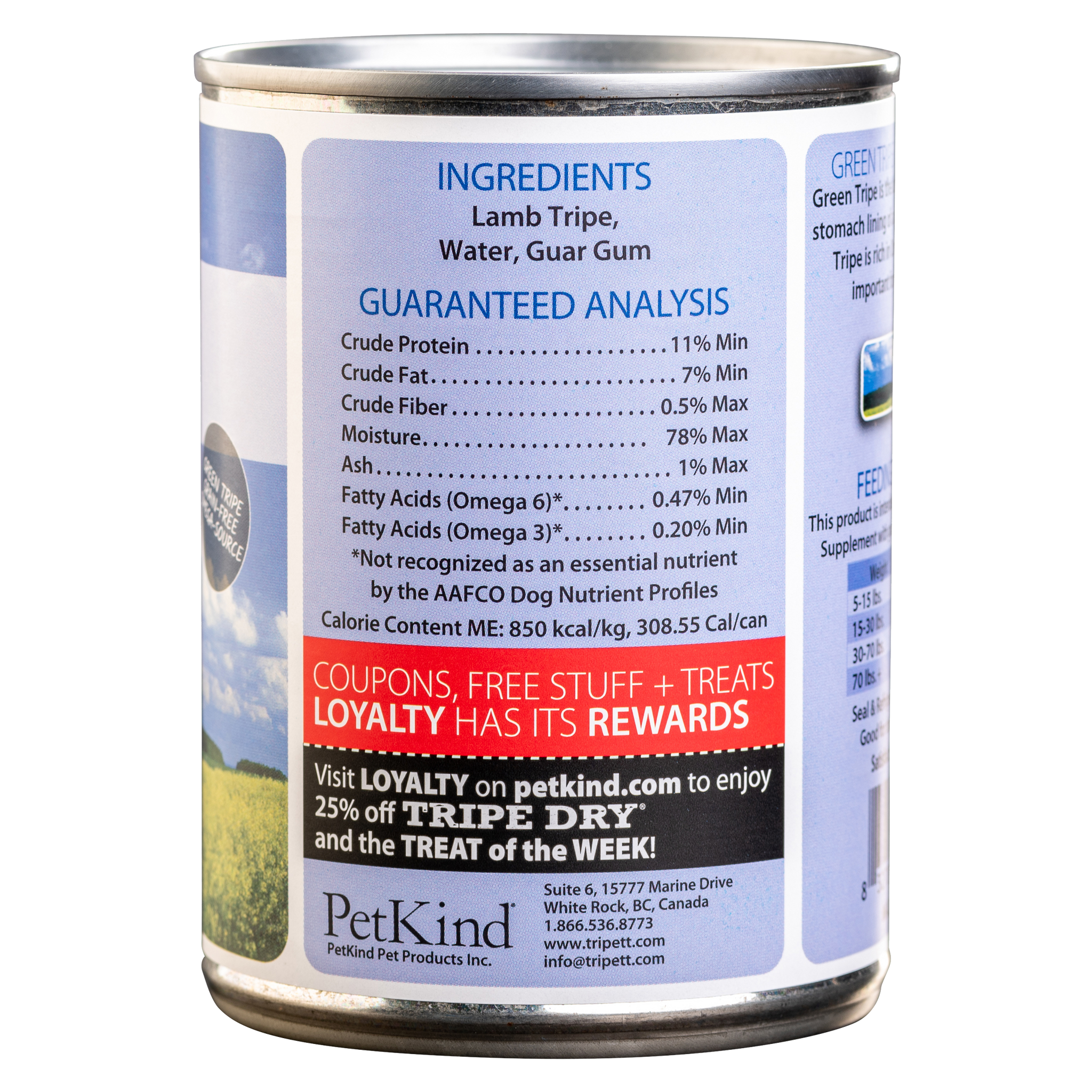 Tripett New Zealand Green Lamb Tripe is a grain-free product consisting of nearly 100% green New Zealand lamb tripe. Good for all breeds and all sizes.